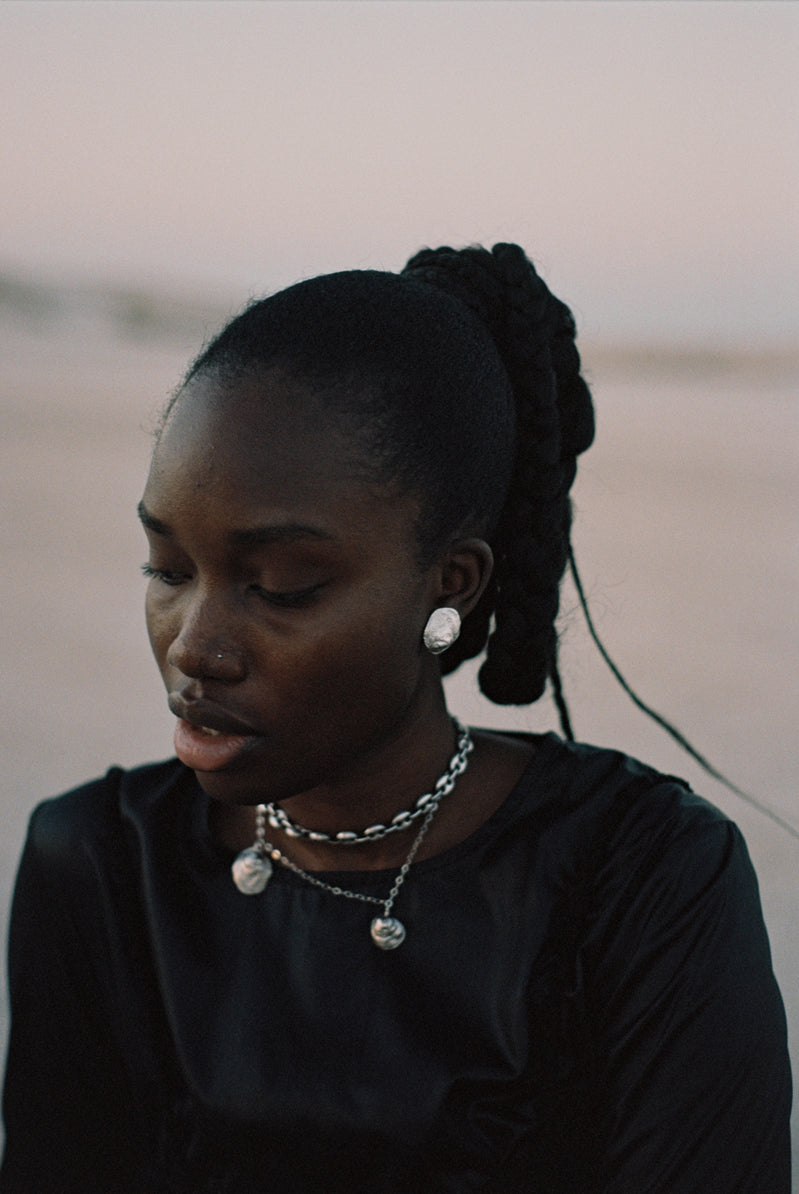'a young woman lost at sea begins a ritual to call for Mami Wata, a West African water deity. Originally inspired by Shaha's beautifully sandcasted objects and jewellery, "Mami Wata" is a short film and photo series that explores the transcultural nature that gave life to the image of her that we know today.'